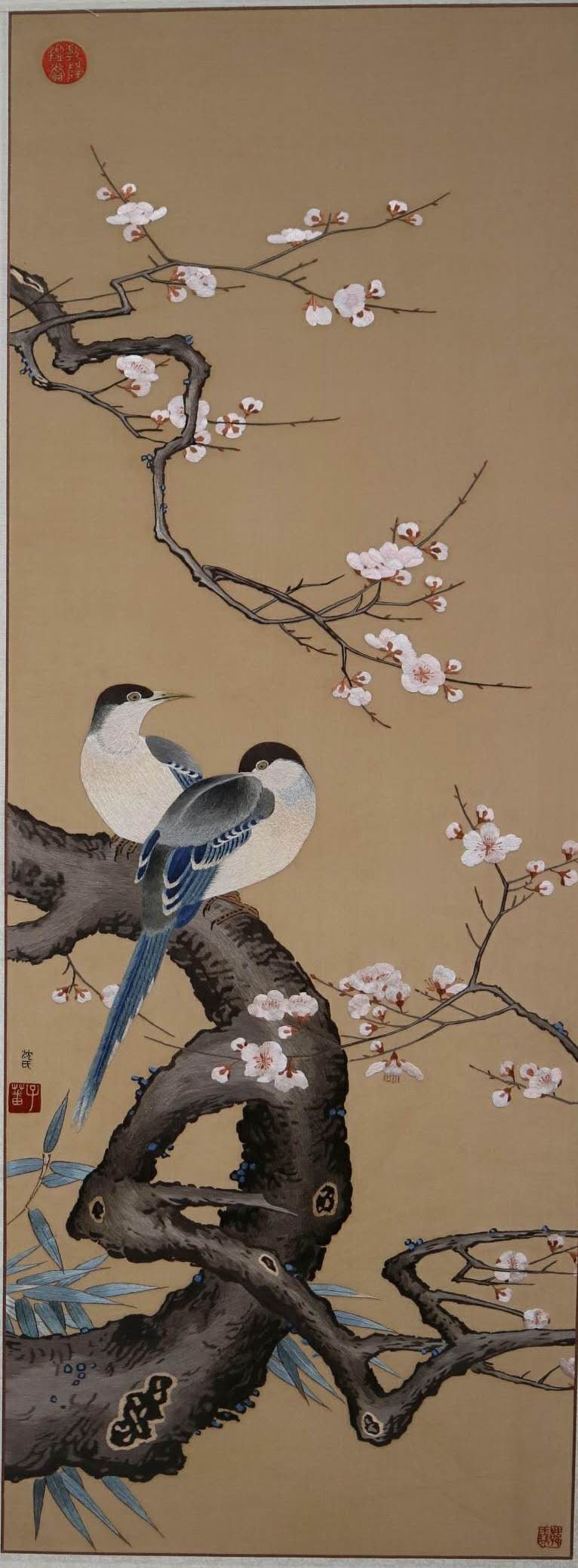 仿宋代缂丝汴绣作品《梅竹寒鹊图》